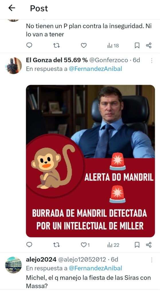 Los comentarios fueron inmediatos y lapidarios. Algunos usuarios reaccionaron con frases como “En octubre afueeraaaaaa, zurdos hijos de mil p…”, mientras otros fueron más directos: “Michel, ¿el que manejó la fiesta de las SIRAS con Massa?”, “Sos un delincuente morsa” o “¿Te hiciste de La Cámpora, Aníbal?”. El repudio fue tan masivo como espontáneo.