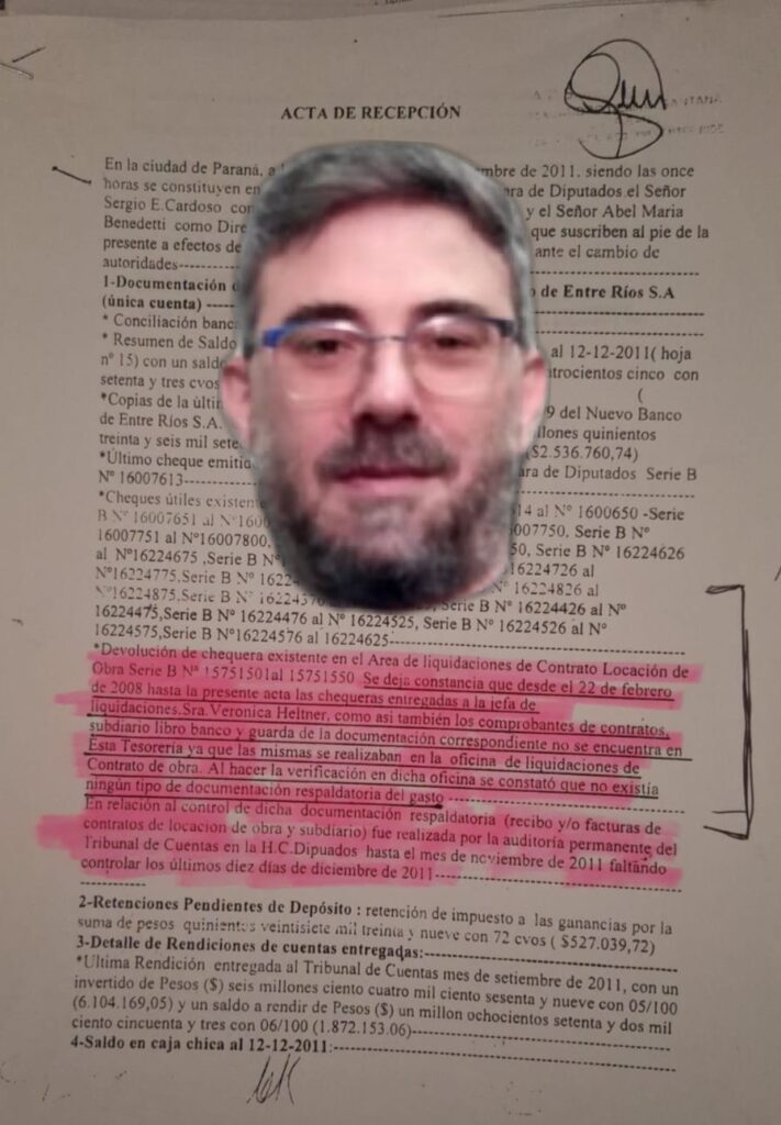 La respuesta fue tan brutal como reveladora: no había documentos entre 2007 y 2011.El período más oscuro de la Cámara de Diputados —justamente el que abarca de 2007 a 2017, donde se concentró el desfalco— quedó sepultado por un agujero administrativo que no fue casual: coincide con la época en que el secretario de Cámara era Jorge Gamal Taleb, actual fiscal coordinador de Gualeguay, la Justicia empezó a buscar las pruebas, lo único que apareció fue un acta de recepción firmada en diciembre de 2011, que dejó constancia de una irregularidad monumental: desde febrero de 2008, los cheques y subsidios eran entregados directamente a una jefa de liquidaciones sin documentación, sin control, y sin que quedara rastro en Tesorería ni en los libros oficiales. Una verdadera carta blanca para la impunidad.