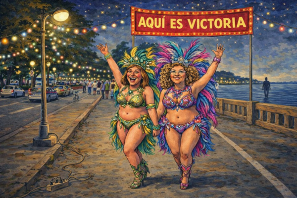 La imagen era extraña: un patio enorme, vacío de gente y lleno de sillas dispersas, más cerca de un simulacro sanitario que de una mística militante. No había bombos, no había murga, no había pueblo: apenas un grupo chico tratando de llenar un espacio que les quedaba gigantesco.