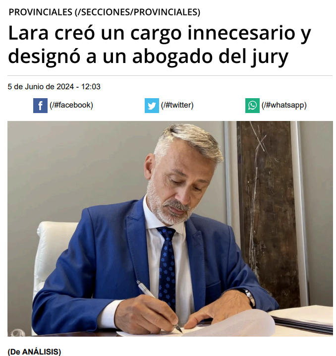 Diego Lara, designado por Gustavo Bordet, accedió tras un concurso a medida, con un proceso administrativo diseñado para garantizarle el cargo. Exdiputado y operador histórico del bustismo, Lara asumió con una única función: garantizar que el Tribunal no viera lo que no debía ver. De hecho como no tenia antecedentes en el ejercicio de la profesion se le considero los años como miembro del JURADO DEENJUICIAMIENTO, desde donde blindo a JORGE AMILCAR LUCIANO GARCIA, quien hoy investiga «NUEVEMENTE» las irregularidades del IOSPER.-