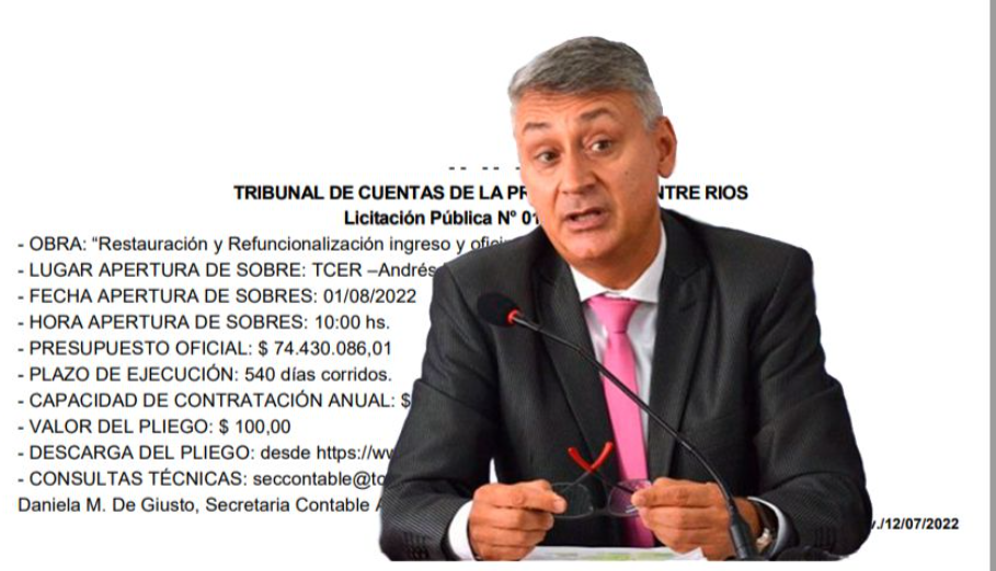 En 2018, con el aval directo de Gustavo Bordet, fue designado vocal del Tribunal de Cuentas de la Provincia de Entre Ríos, un órgano con rango constitucional que controla la legalidad del gasto público y emite dictámenes clave para causas penales. Accedió a ese cargo tras un concurso diseñado a medida, que borró antecedentes y méritos para garantizarle la designación.