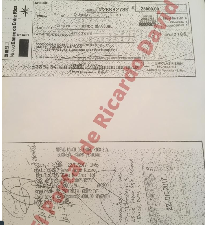 EL PORTAL RICARDO DAVID MOSTRO LOS CHEQUES COBRADO POR LARA Y SU PAREJA DE MANERA IRREGULAR, HASTA EL PRESIDENTE DEL STJER (PORTELA) TUVO QUE JUSTIFICAR ESA DEFENSA DICIENDO QUE LOS ARTICULOS PERIODISTICOS NO SIRVEN PARA INCIIAR CAUSAS DE REMOCION.-